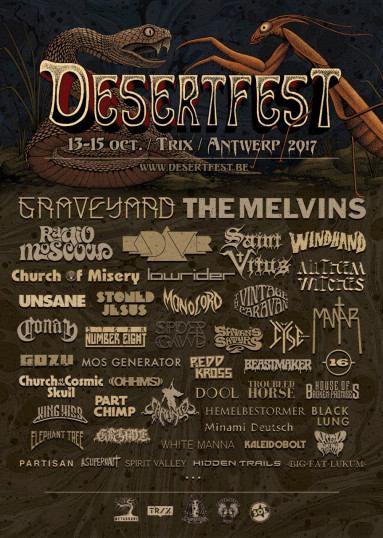 The Melvins - Kadavar - Saint Vitus - Church of Misery - Monolord - Conan - Spidergawd - Mantar - Red Kross - Dool - Mos Generator - Part Chimp - Spirit Valley - Partisan - Hemelbestormer - High Fighter - Big Fat Lukum