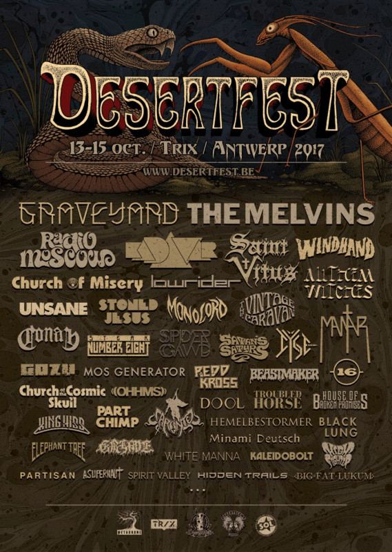 Now it's official: Desertfest Antwerp 2017 edition is on, and it will be from Friday Oct 13 (whoo!) until Sunday Oct 15. The first names for the 2017 edition: