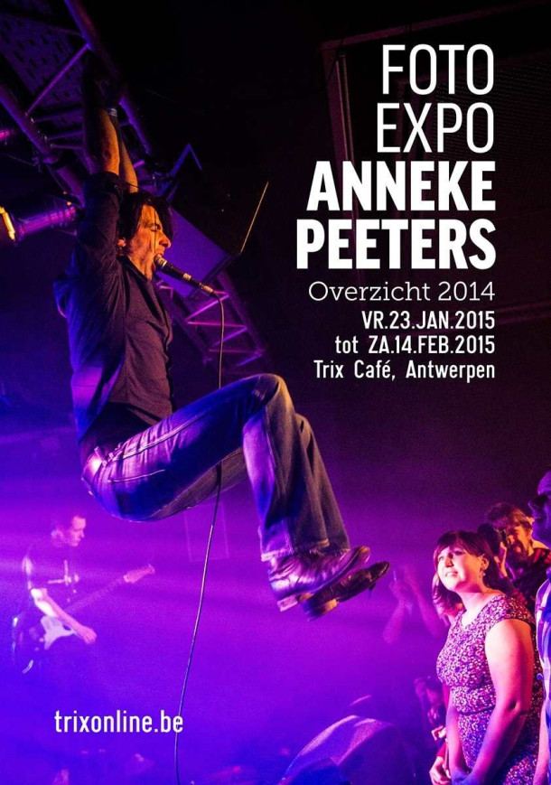 Anneke Peeters was de afgelopen maanden aan de slag als huisfotografe in Trix. Ze fotografeerde heel wat rockgoden en aanstormende talenten zowel op als achter het podium. Ook bij vele andere concertpodia legde ze de beste live-momenten vast. Nog tot en met zaterdag 14 februari kan je haar intrigerendste beelden van 2014 komen bekijken in Trix. De toegang is gratis.