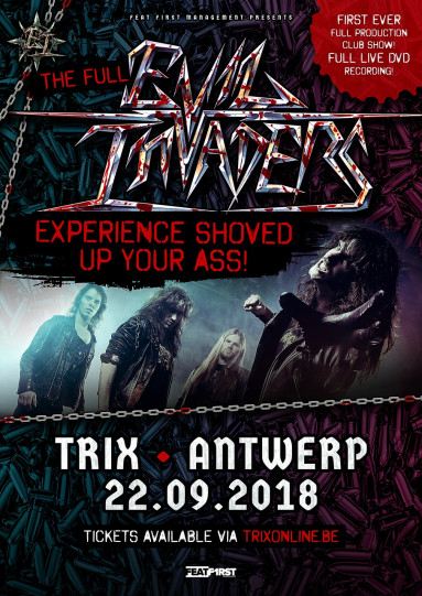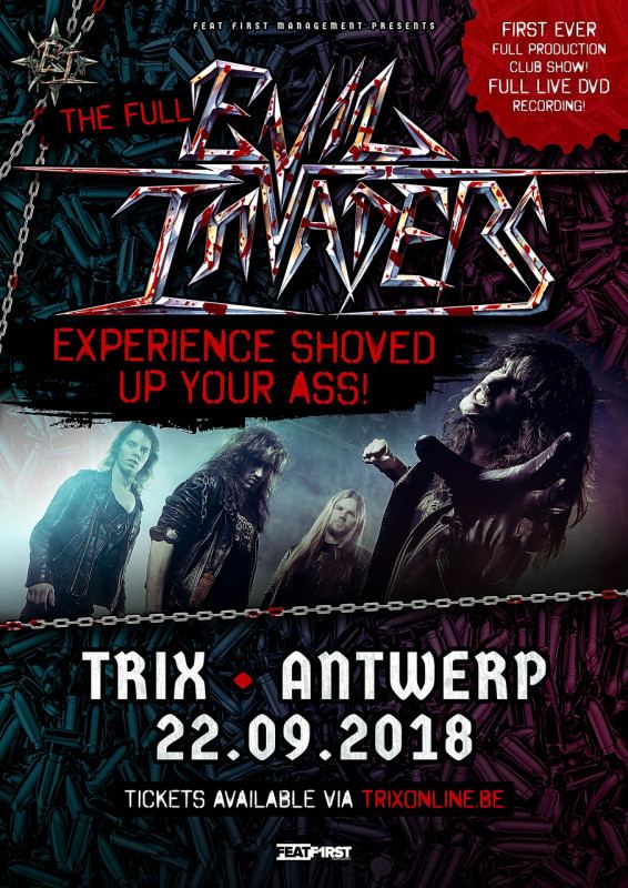 België’s snelst groeiende metalband Evil Invaders kwam in september 2017 terug met het album 'Feed Me Violence' en hun snelheidstrein lijkt nu écht vertrokken! Na een uitverkochte albumshow in Aarschot, een Europese tournee en een Belgische clubtour in december, zal de band op 22 september aantreden in de grote Trix Zaal. Hier zullen de heren hun grootste headlineshow tot dusver presenteren en beloven ze productioneel alles uit de kast te halen. In Trix zal Evil Invaders voor de allereerste keer hun volledige showproductie kunnen opstellen en wordt alles opgenomen voor een speciale live-DVD!