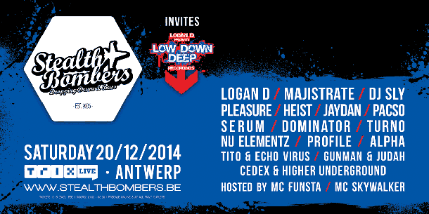 Stealth Bombers is terug! Dit keer met de focus op het machtige label Low Down Deep Records! Verwacht de hele nacht lang topnotch jump up drum and bass. De perfecte party aan het einde van uw 2014.