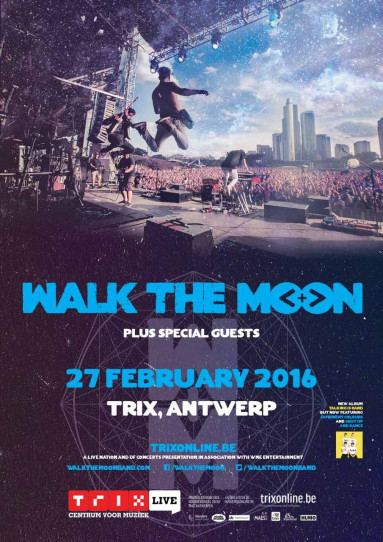 Walk The Moon is een Amerikaanse poprock- en synthpopband uit Cincinnati. De naam Walk The Moon is afgeleid van het nummer ‘Walking on the Moon’ van The Police. In november 2010 bracht de groep in eigen beheer het album ‘I want! I want!’ uit. De groep tekende vervolgens een contract met het platenlabel RCA Records en bracht in juni 2012 haar eerste zeer goed ontvangen officiële album uit. Het leverde hen o.a. een plek op als vast voorprogramma tijdens de Europese tour van FUN.